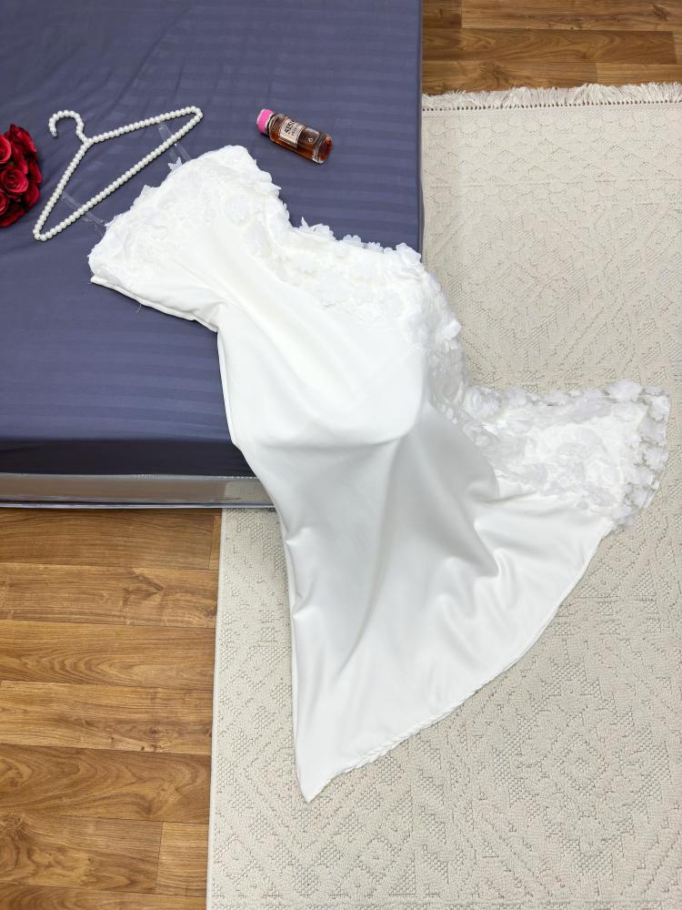 وصف الفستان: فستان ناعم انيق مزن ورود ابيض فخم
