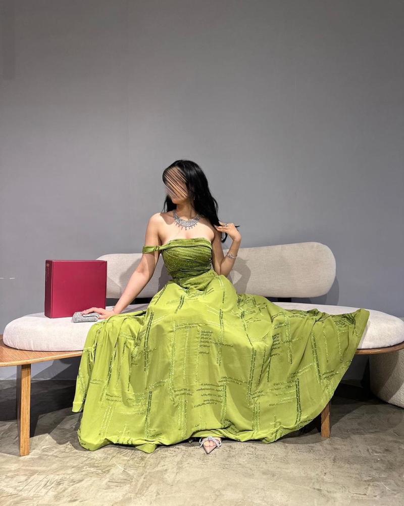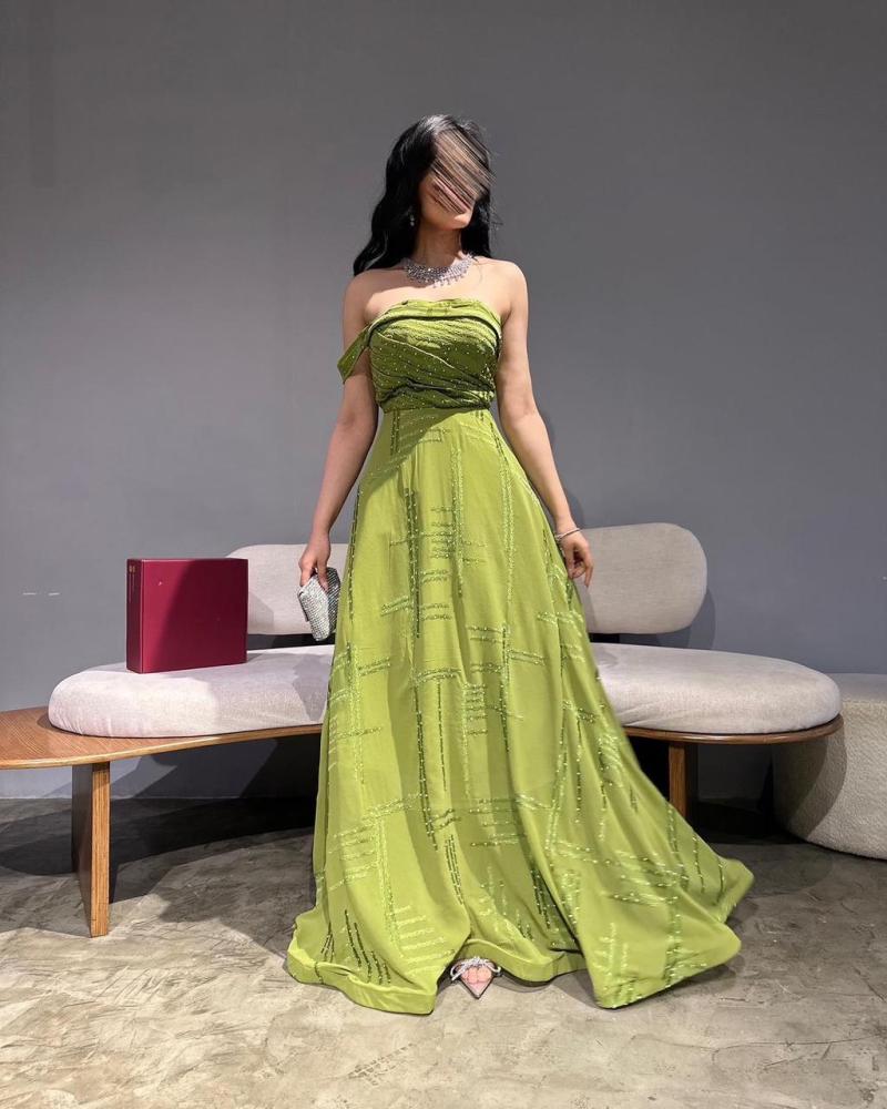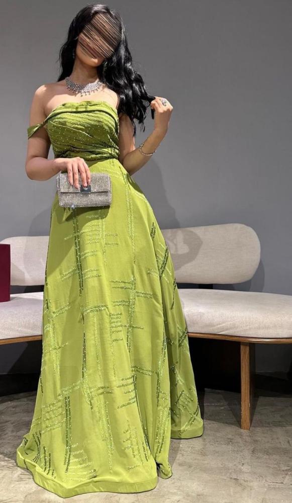 نوعيه التصميم: فستان سهره انيق بالون الاخضر
