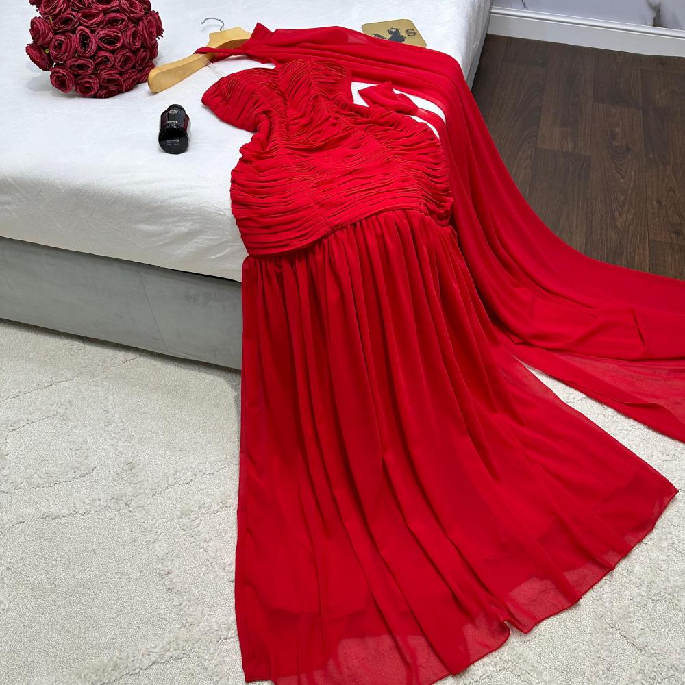 فستان احمر ناعم بقصه زم انيقه