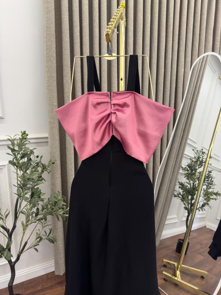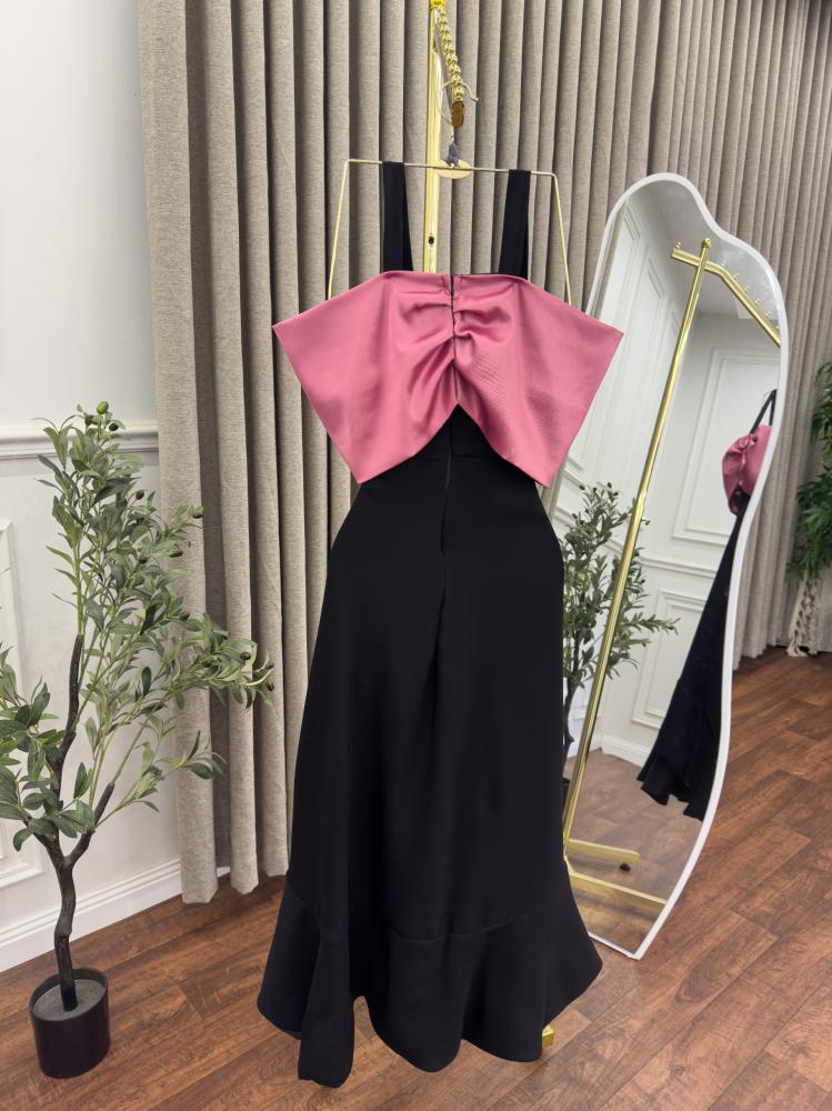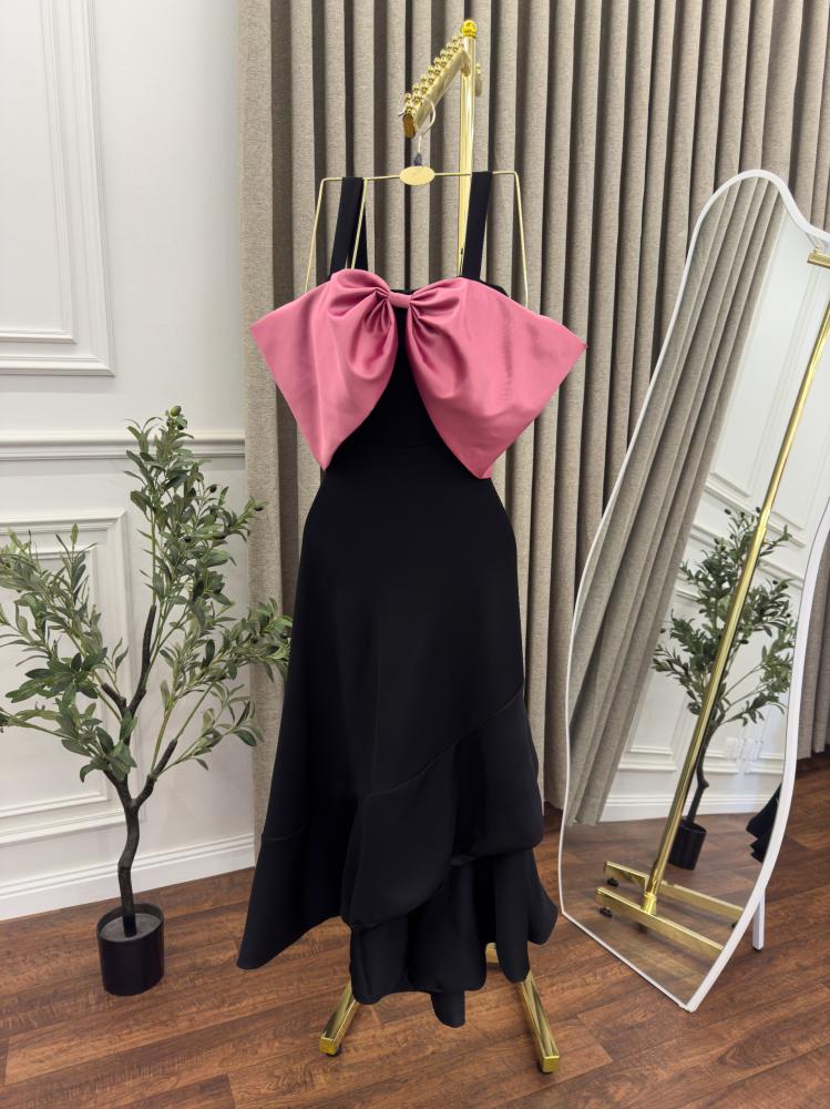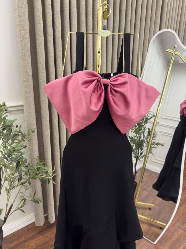 فستان العيد اسود بشكل فيونكة على الاكتاف