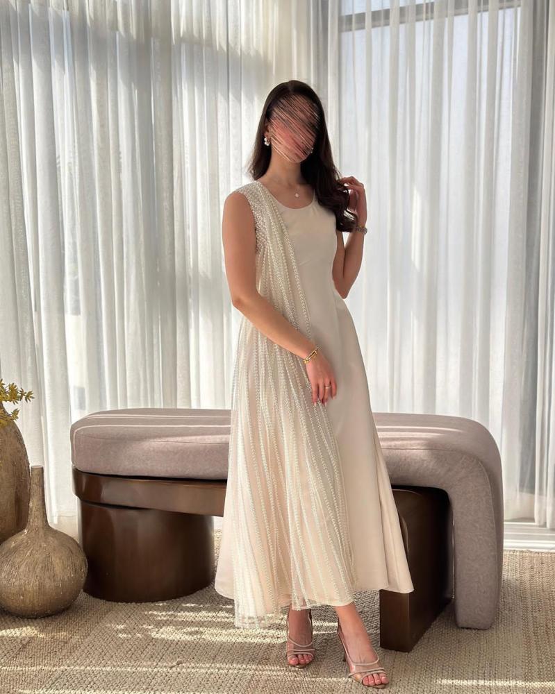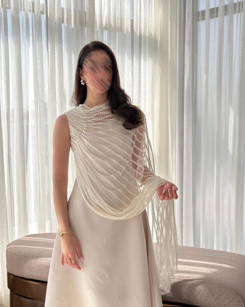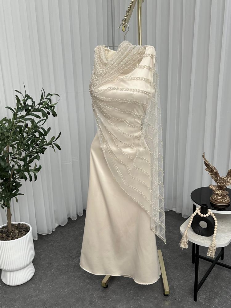 فستان بيج مزين شال من لولو