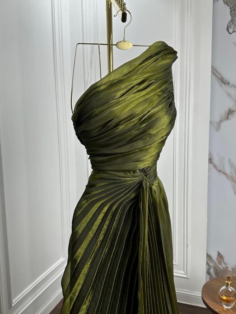 فستان زيتي ناعم بوليسه