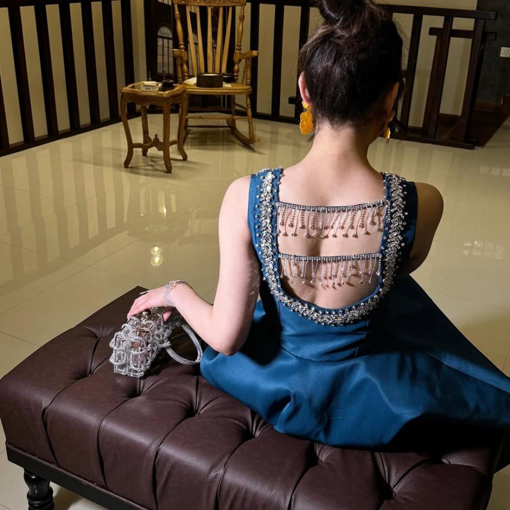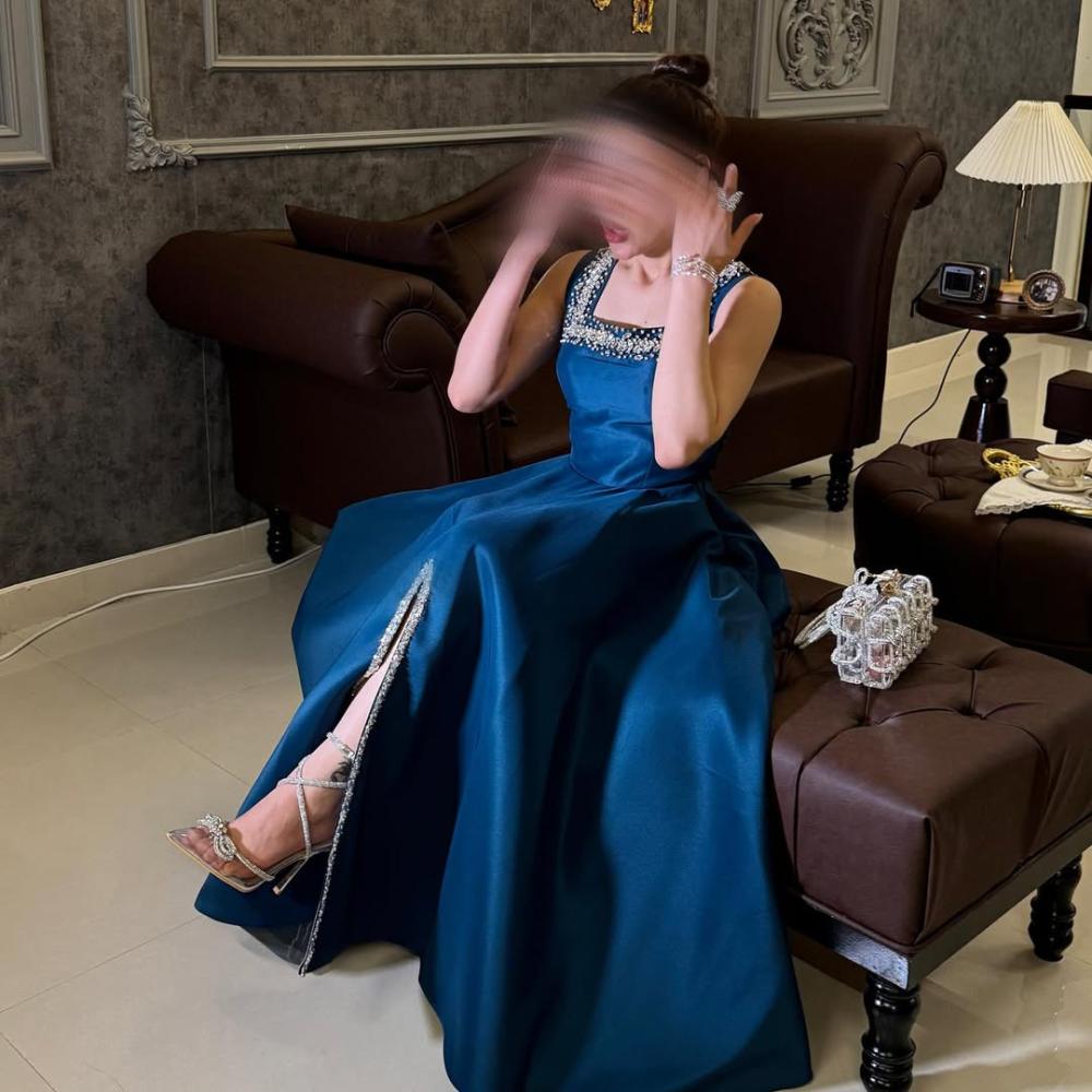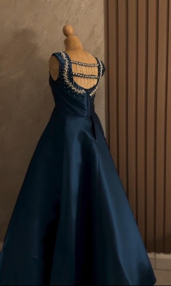 مرصع فصوص/ لون بترولي الاصل : طول الفستان/ 160 سم