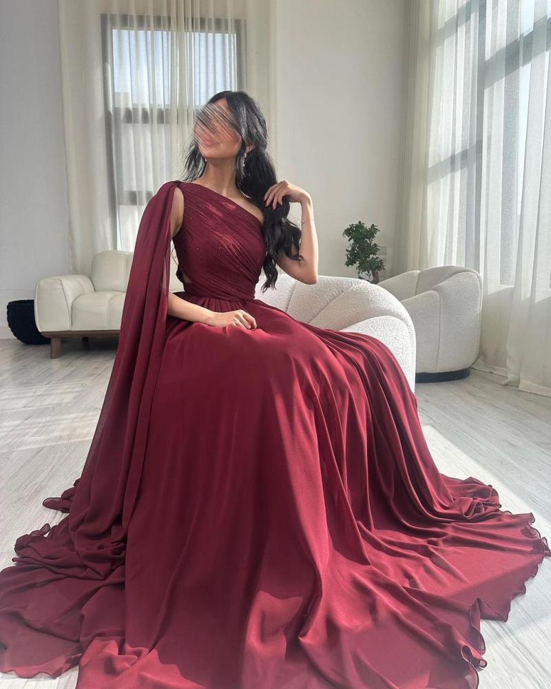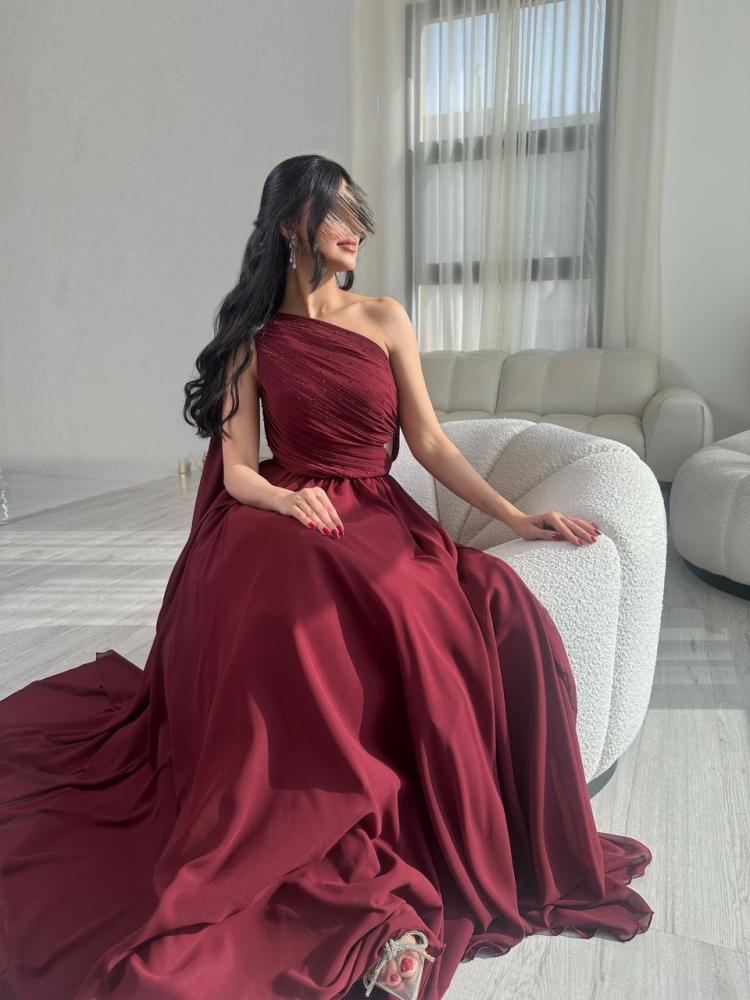 فستان عودي انيق بخامه جورجيت شيفون مبطن
