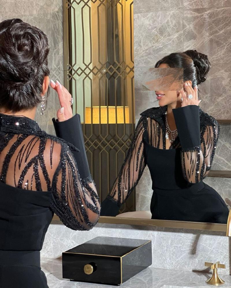 قماش الفستان: كريب استرتش + الصدر كلفه مشجر اصليه