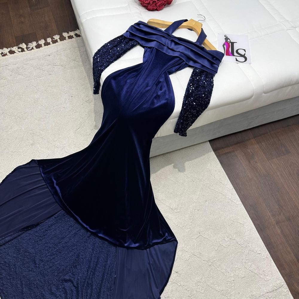 فستان كحلي انيق بذيل ترتر