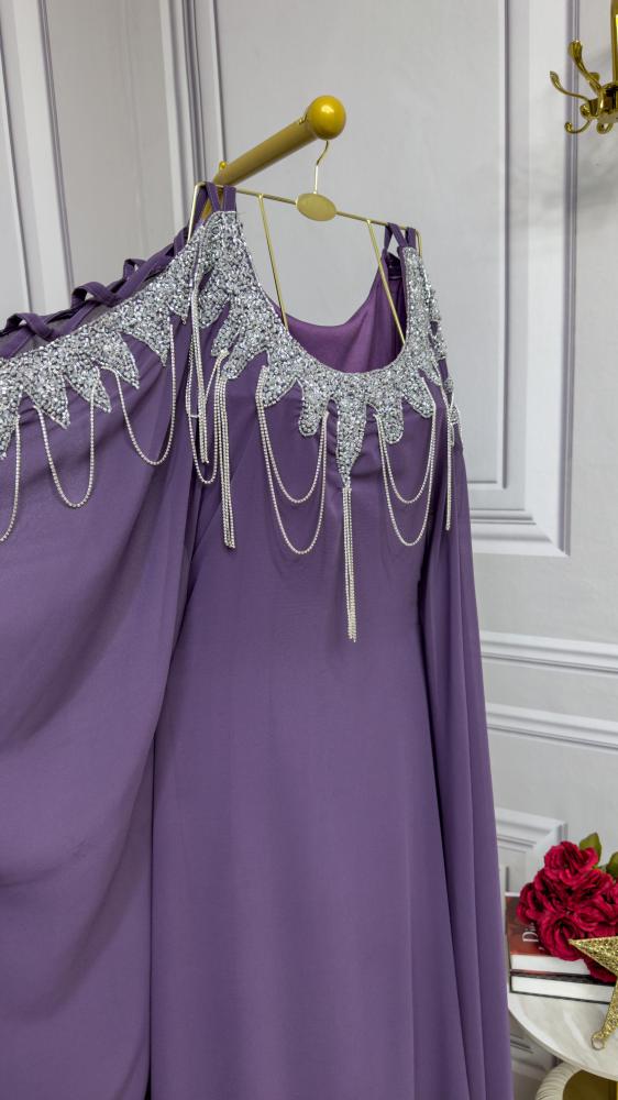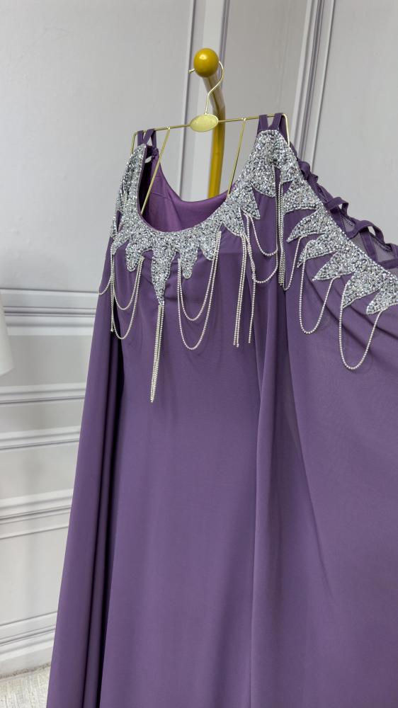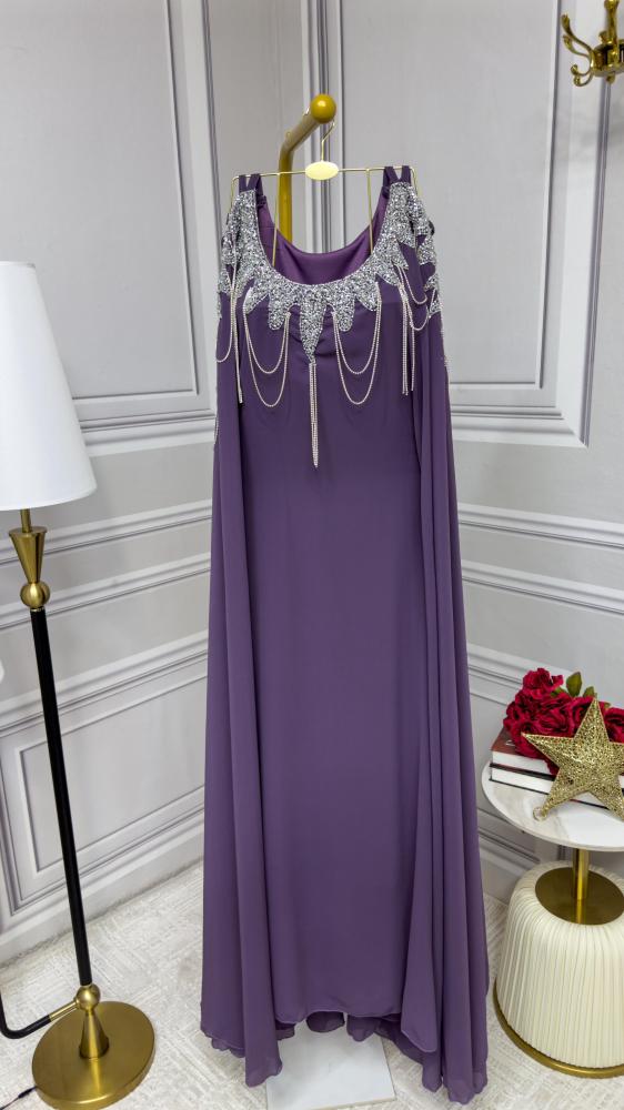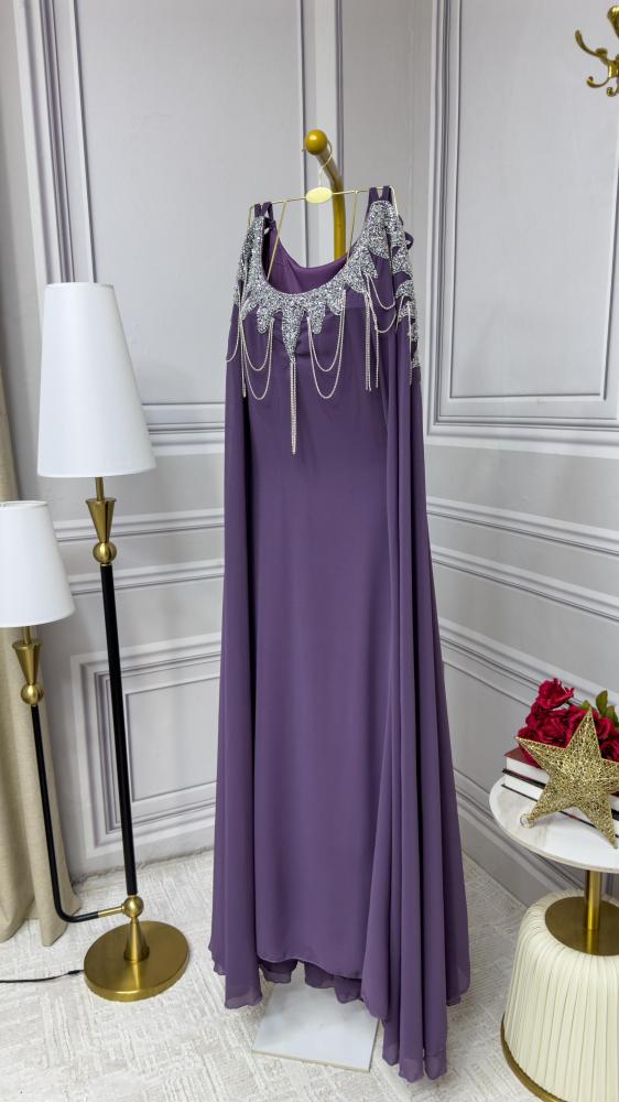 قماش . شيفون مبطن تفته + تطريز يدوي راقي مزين هذب