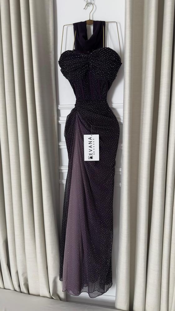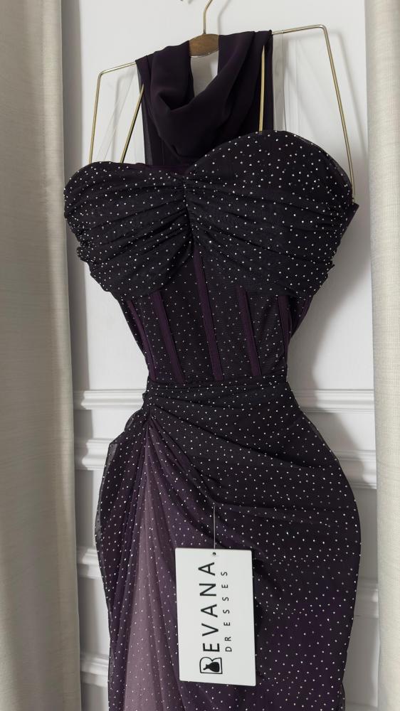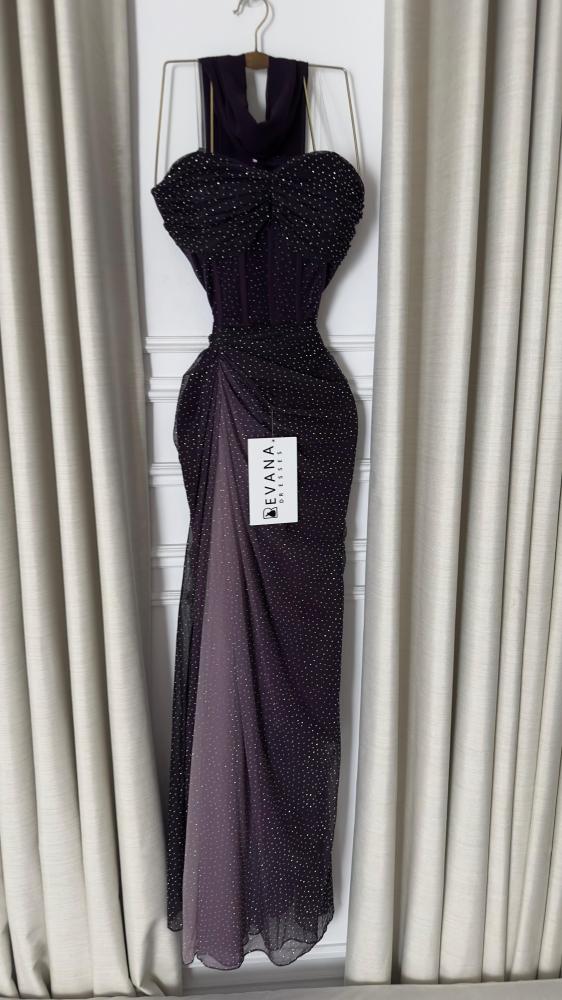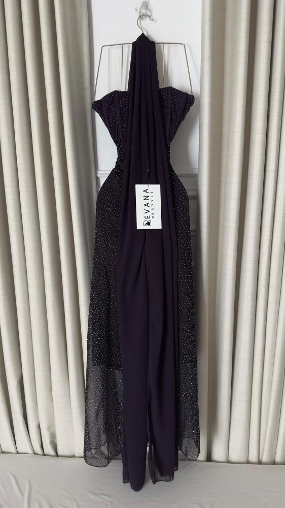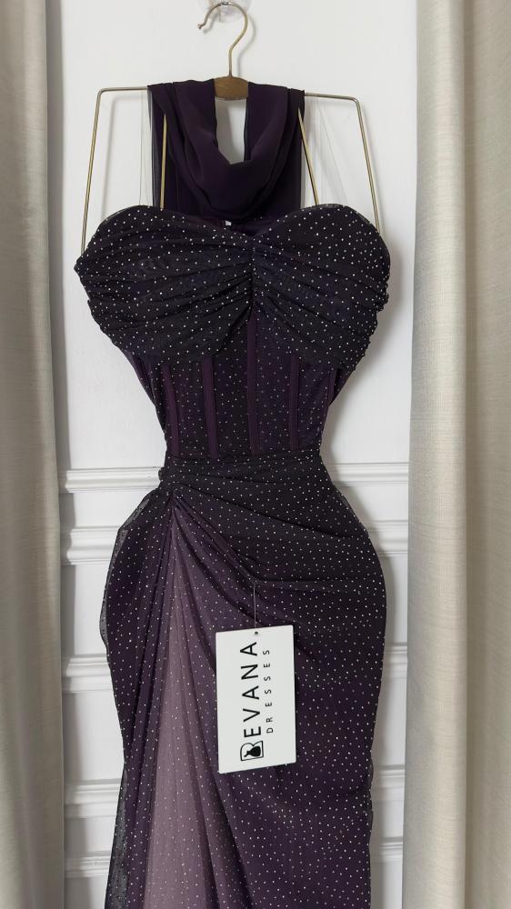 الخامه/ سهره مرصع فصوص لمعه لون موف مموج + شال شيفون موف