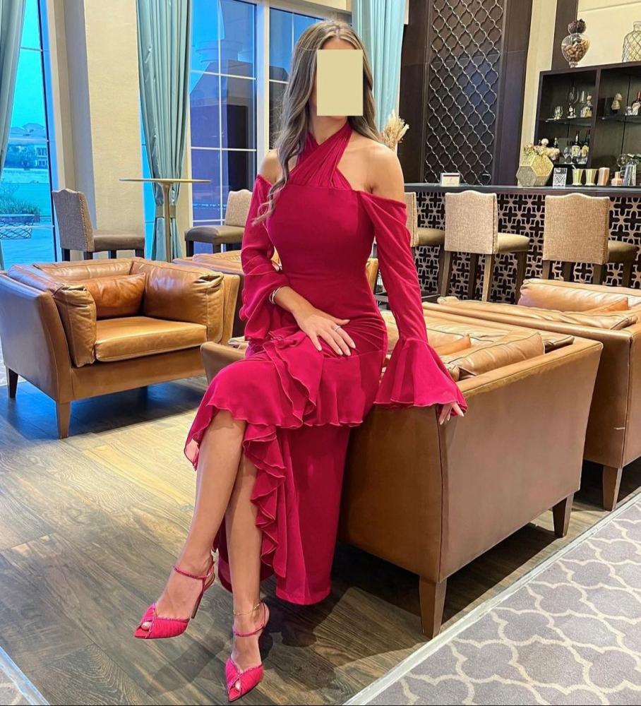 نوعيه التصميم: فستان وردي بقصه الرقبه فخامه