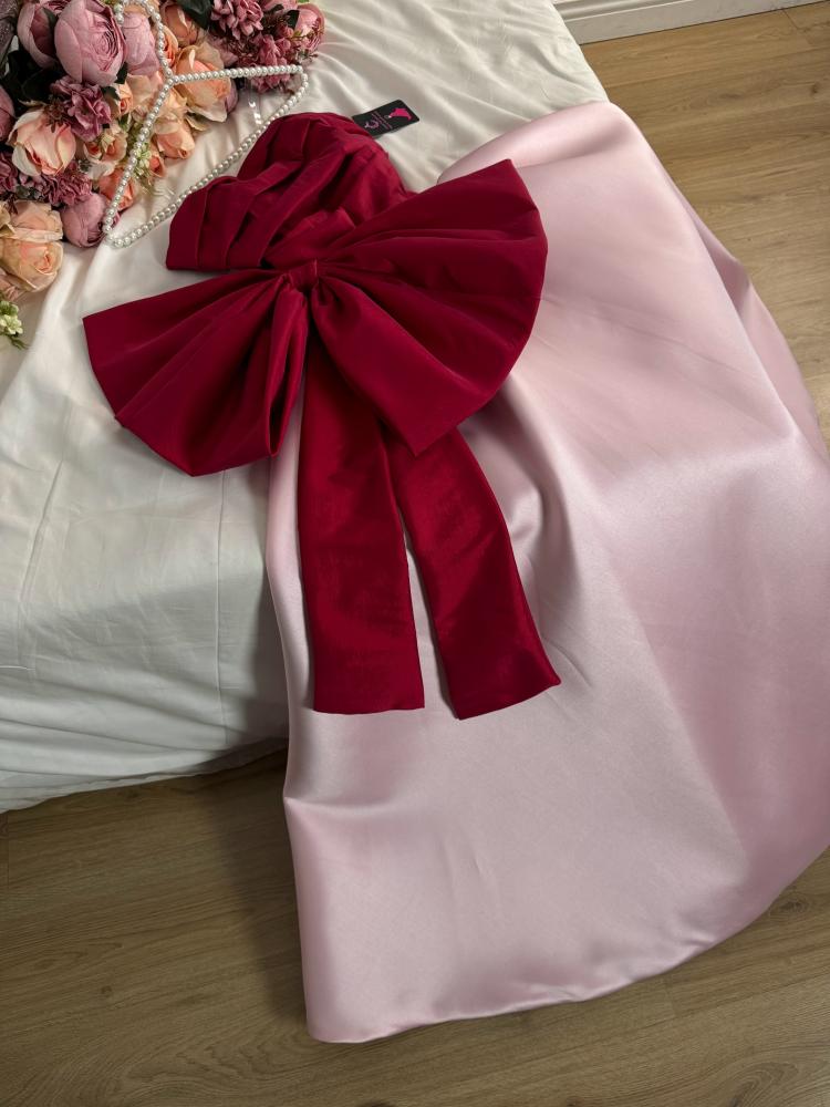 نوعيه التصميم: فستان سهره انيق بقصه كلوش وفيونكا ملفته للانضار