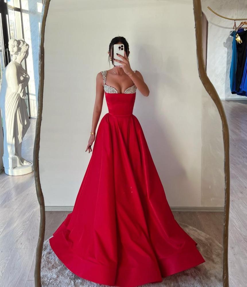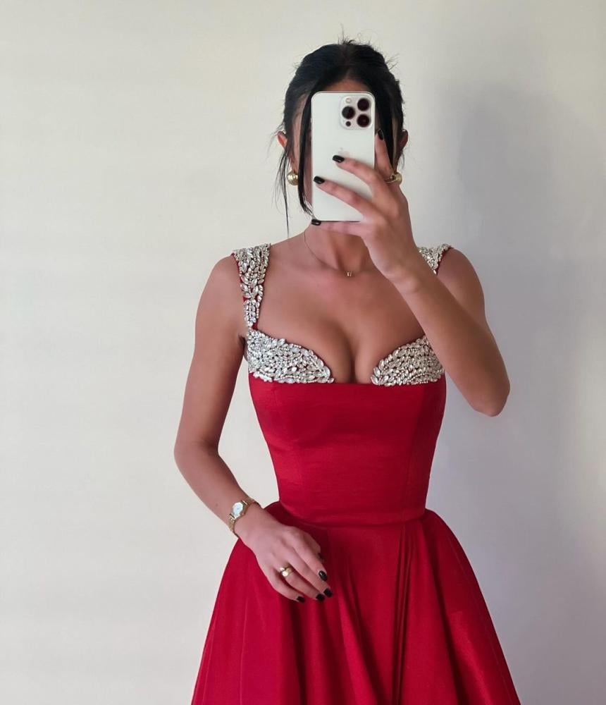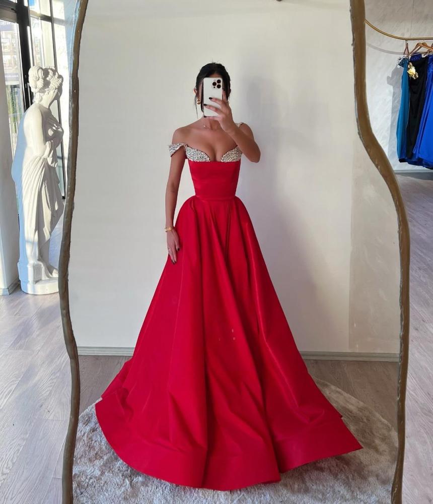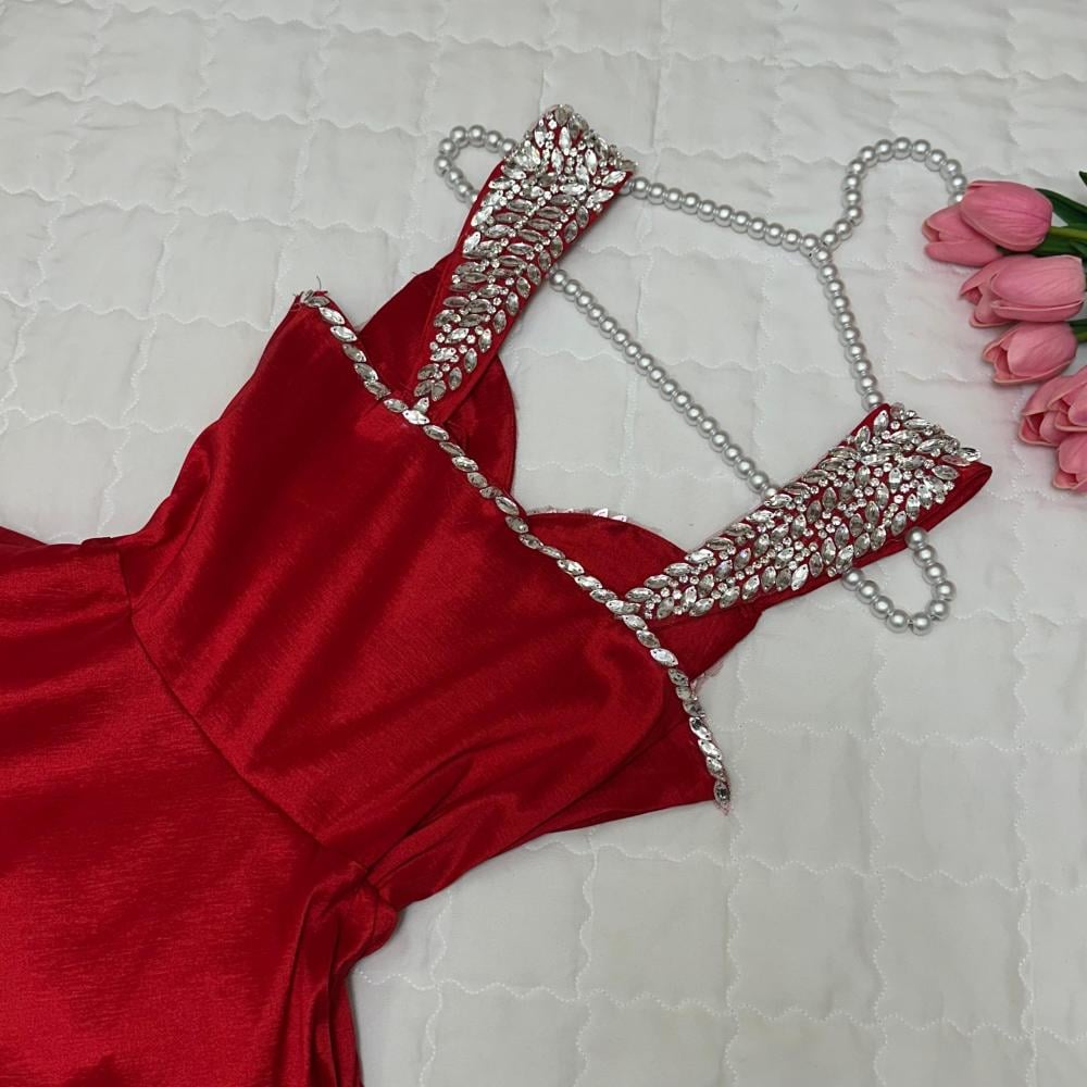 نوعيه التصميم: فستان سهره احمر عاري انيق