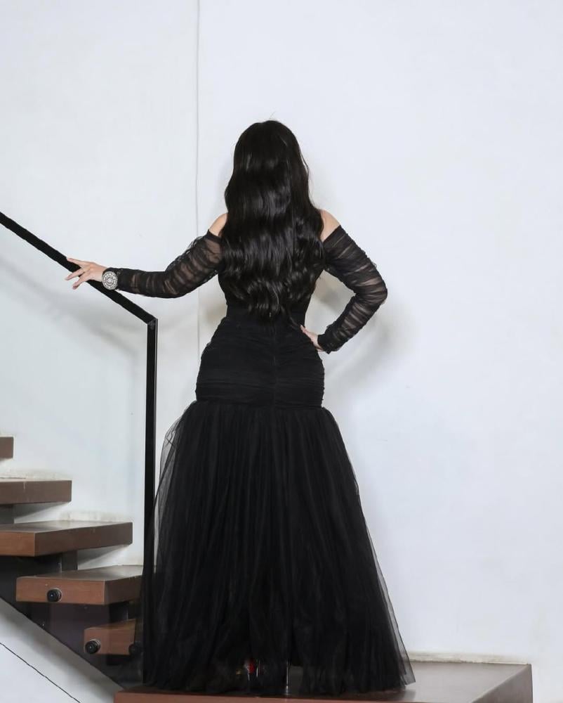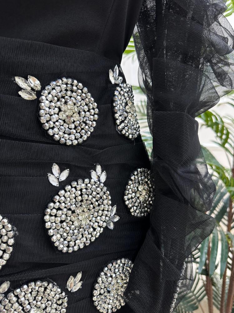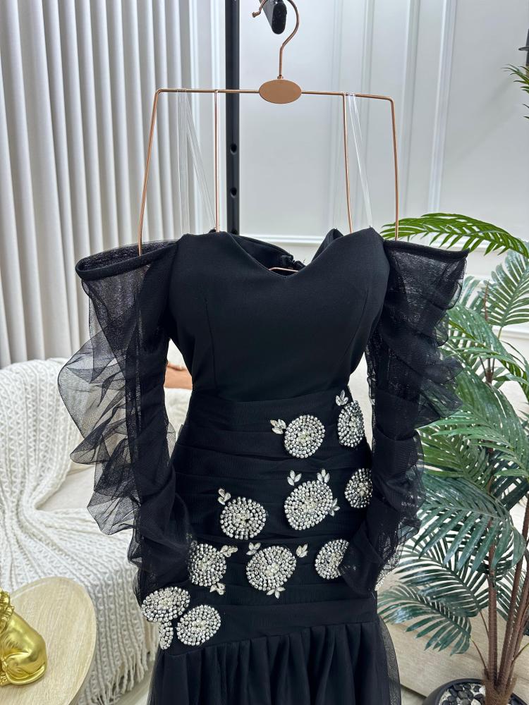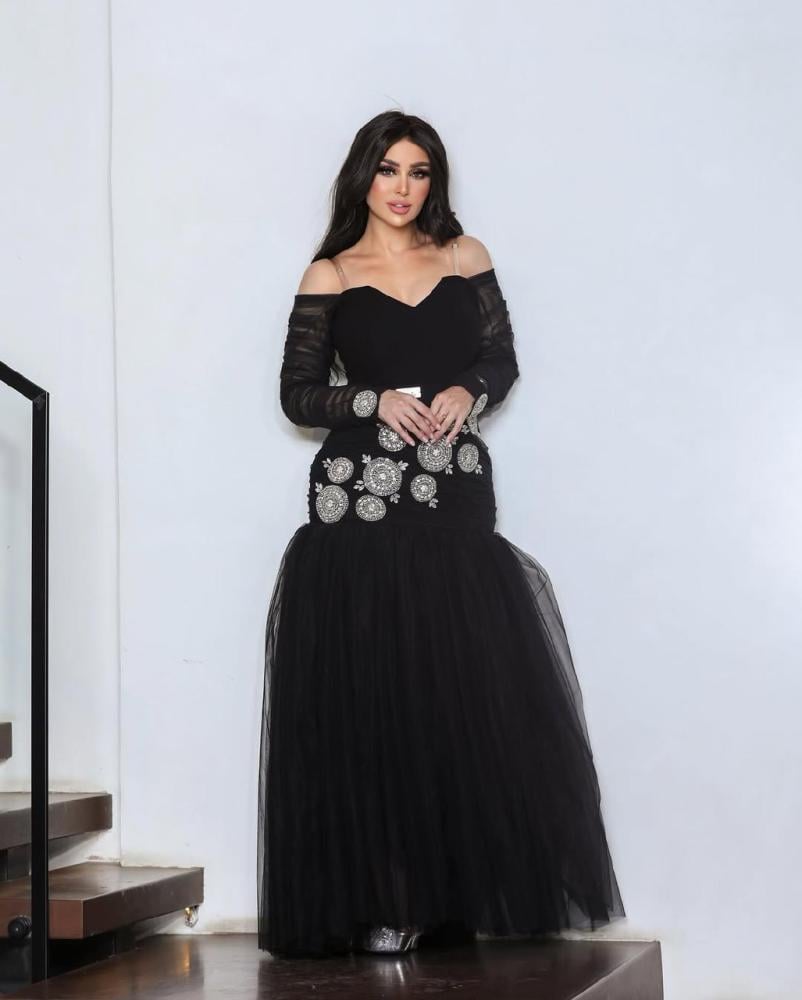 الخامه / كريب + تطريز يدوي + تل ناعم