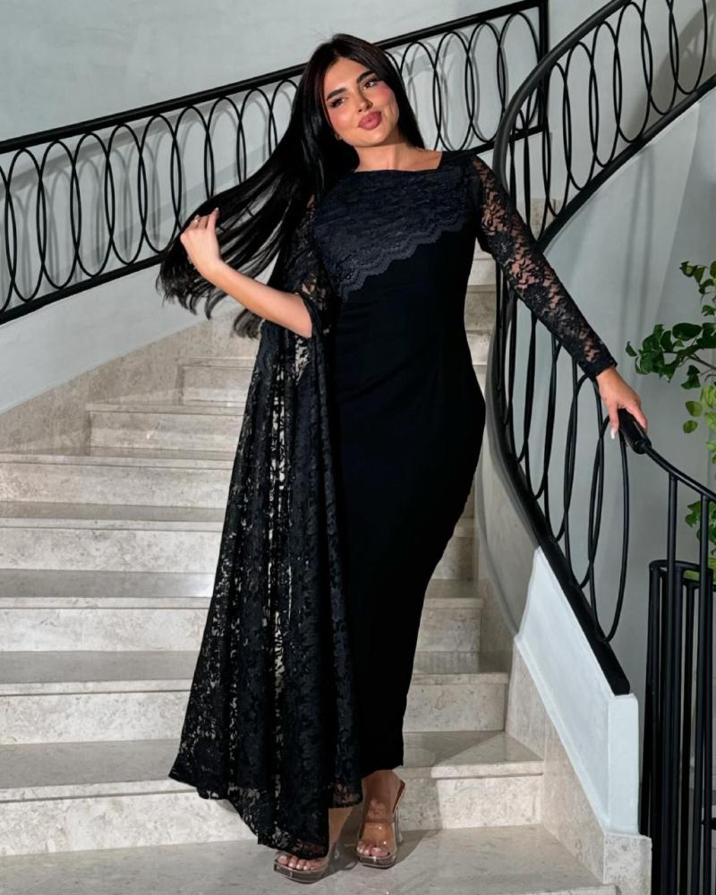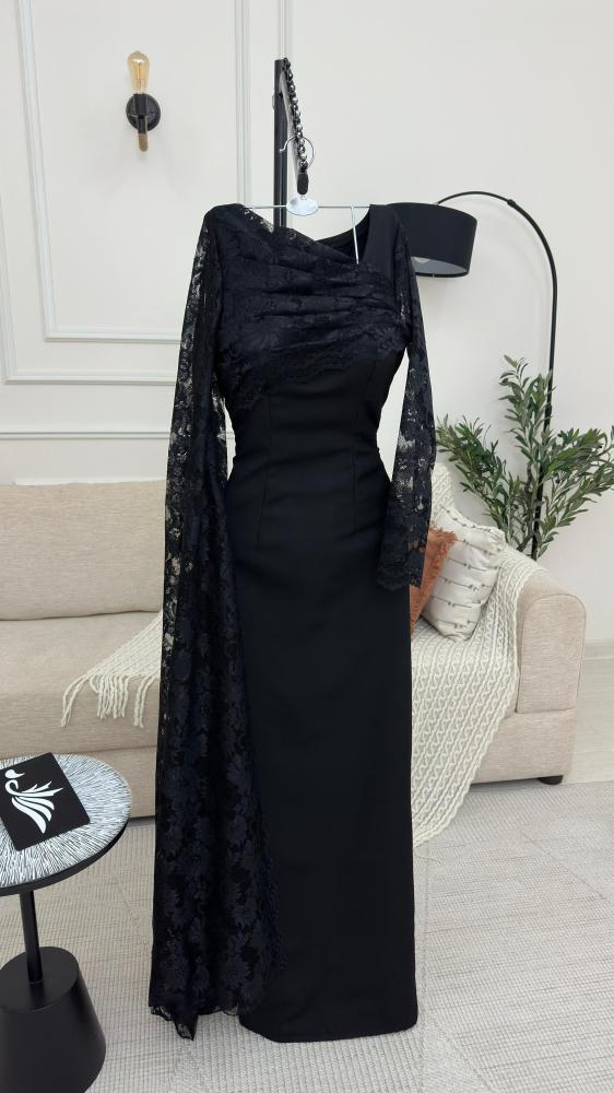 بلون الاسود الملكي وطول الفستان المتناسق لجميع الأعمار