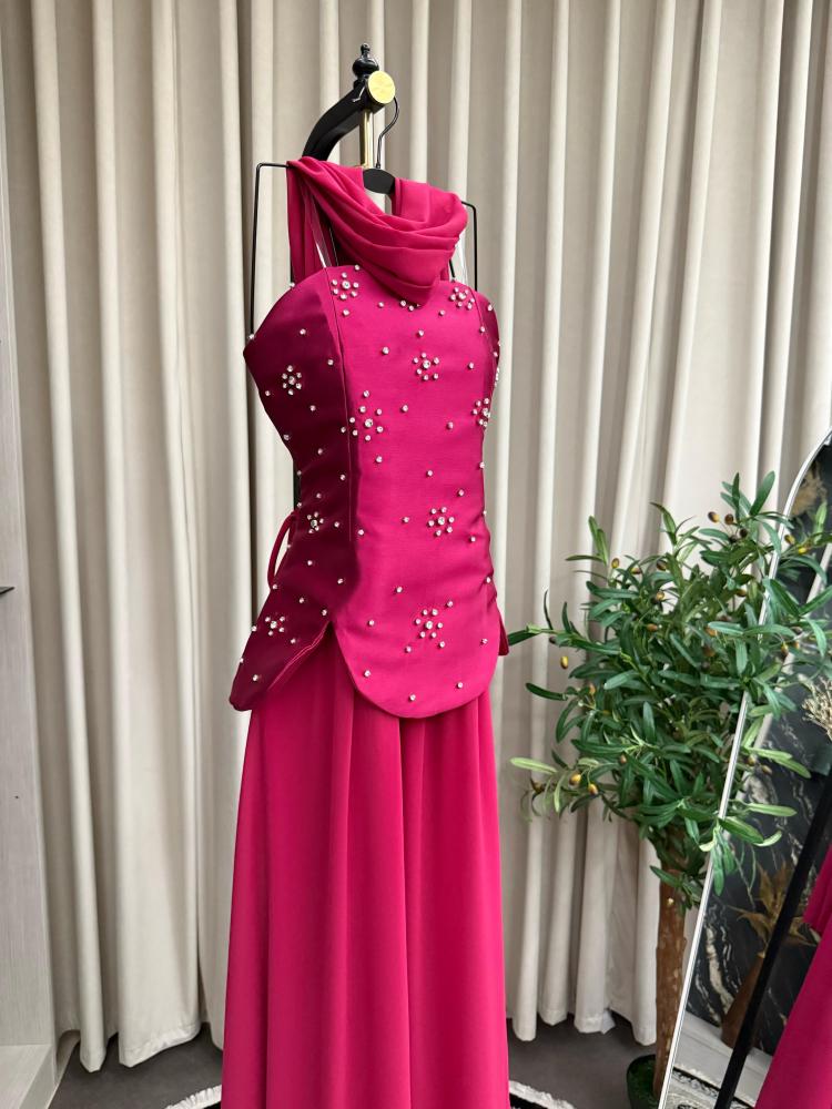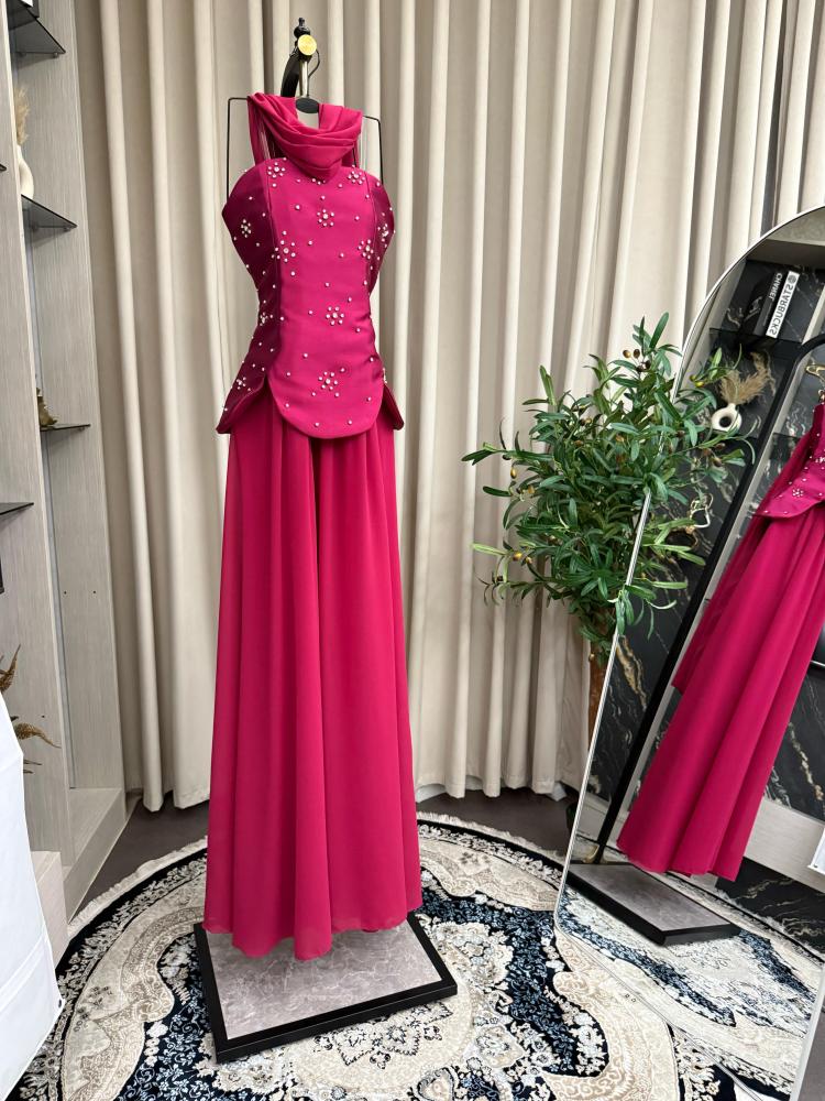 الخامه/ شيفون مبطن + ميكادو مطرز يدوي