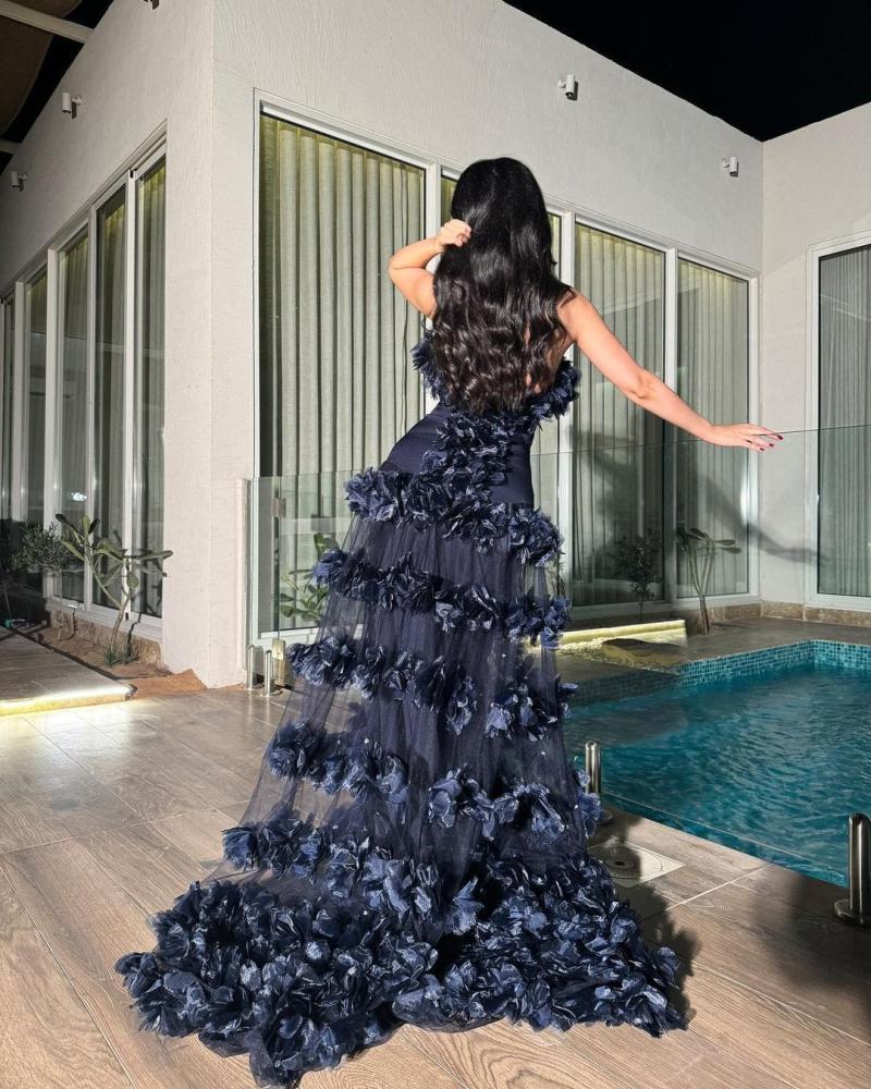 لون الفستان: كحلي