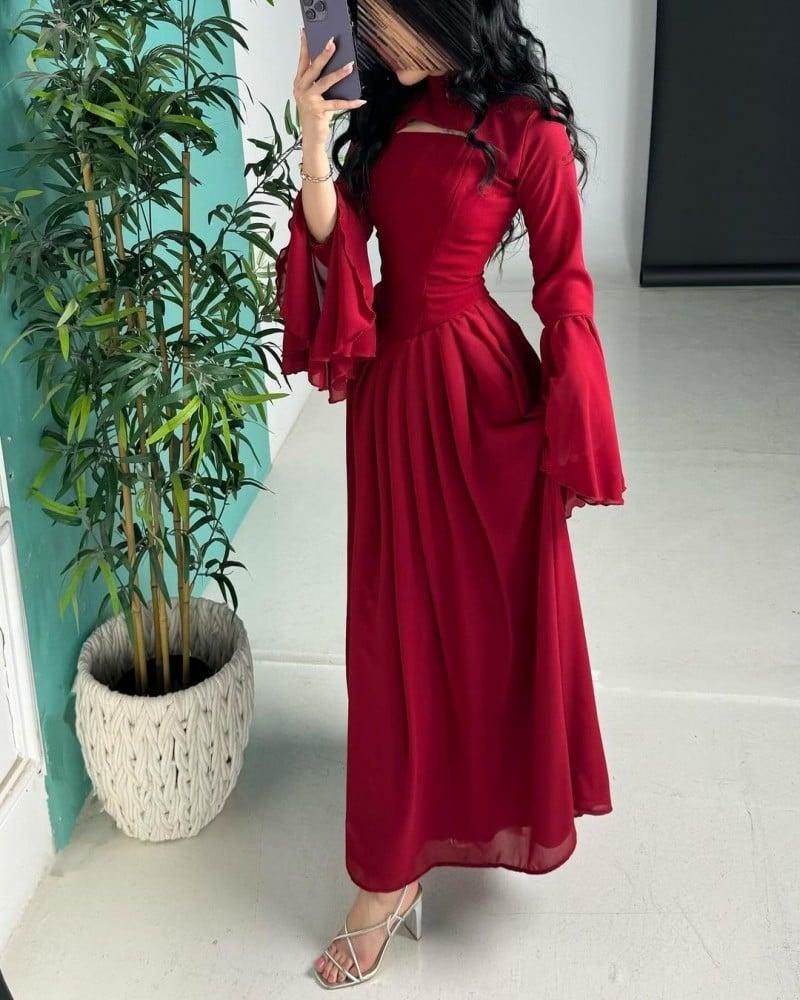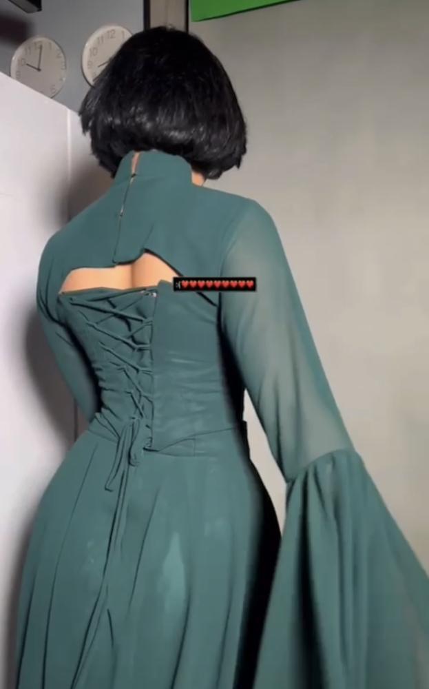 قماش الفستان: كريب + شيفون كلوش من تحت + اكمام ورقبه منفصله