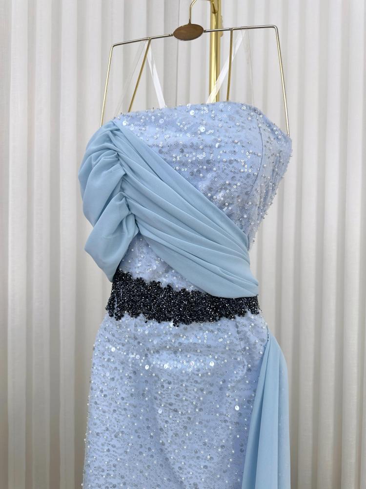 الخامه/ باربي + كلفه ترتر سهره + شيفون مكس+ تطريز الخصر يدوي