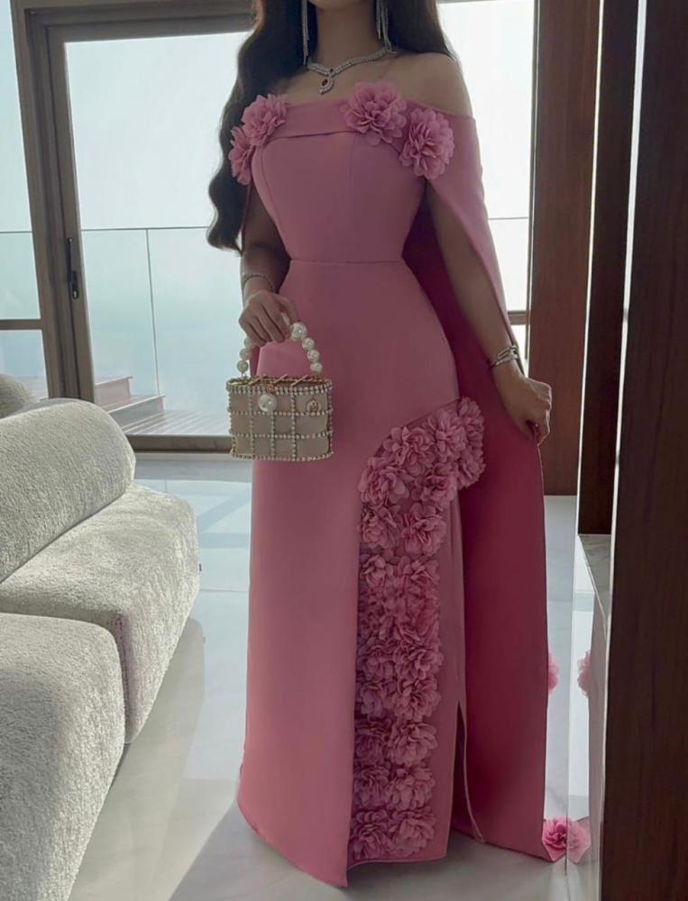 قصه/ بدون اكمام وبذيل طويل مزين ورود