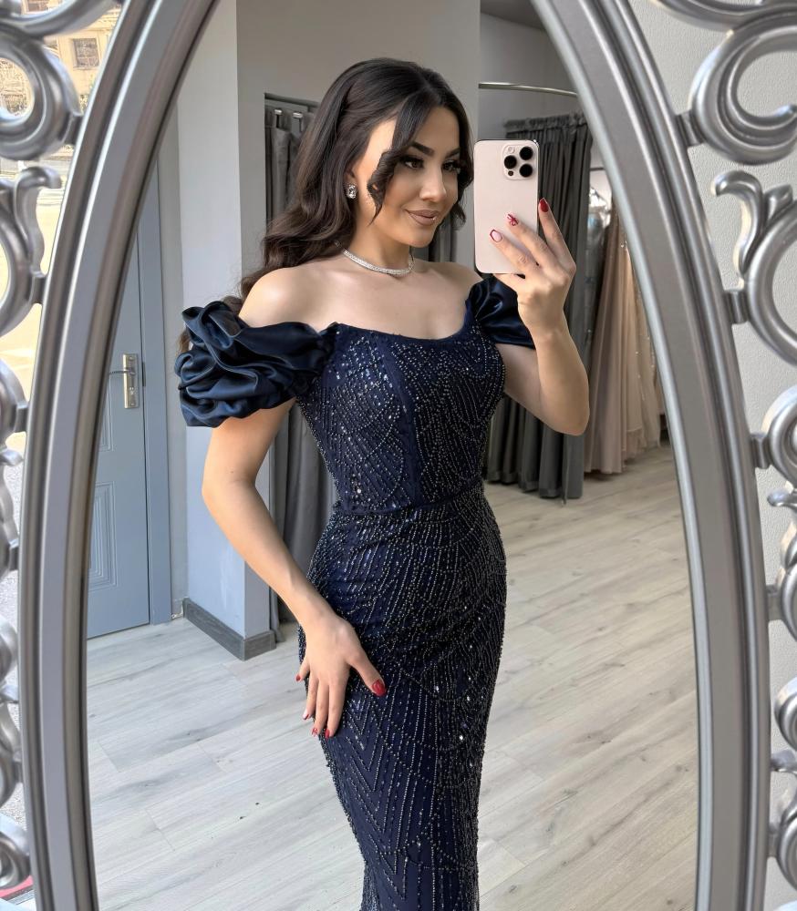 فستان كحلي طويل