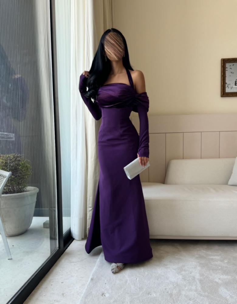 قماش. تفته كريب الاصلي. لون الفستان موف